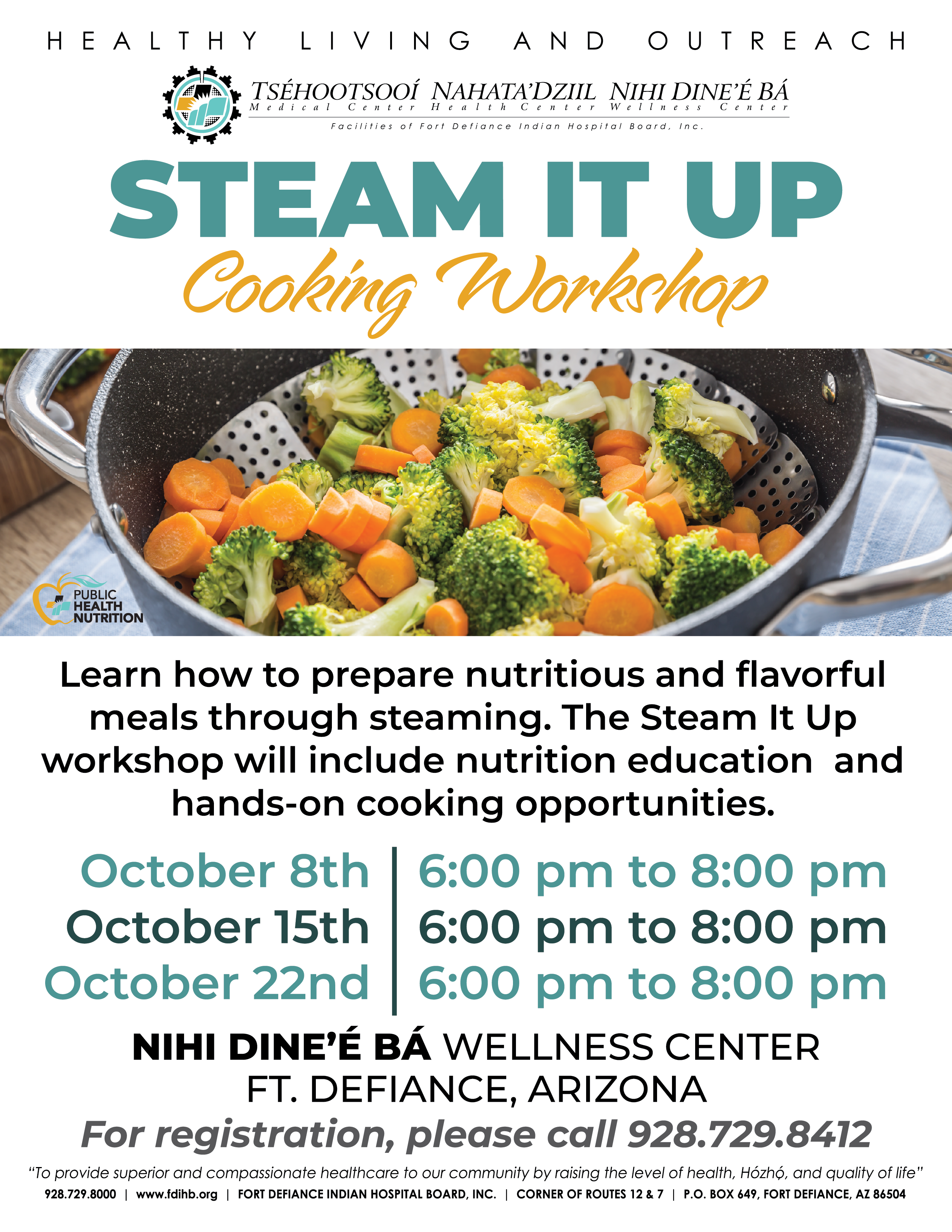 The Public Health Nutrition Program invites you to their Steam It Up Cooking Workshop. Learn how to prepare nutritious and flavorful meals through steaming. The Steam It Up workshop will include nutrition education and hands-on cooking opportunities.
